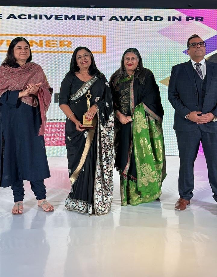 In 2023 when she was planning for this enterprise , to the world she was still the PR Lady. She received the lifetime achievement award for PR from Exchange for Media and Business World in 2023. Click here to Read and hear her at that award function as one of the top ten PR professionals in the country.