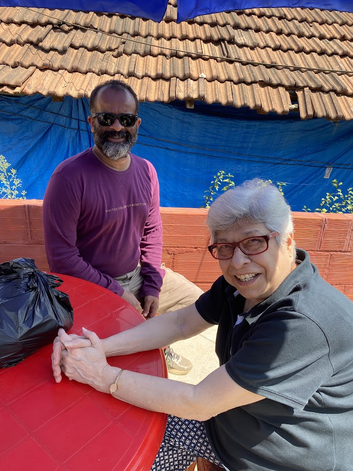 Oh My ! the classy lady knew luxury when she saw it. She spent the next hour exploring our friends Sarita & Ajeeth Pinto’s exquisite fashionable home near the backwaters. After a night of noisy and deadly snoring she woke up full of ideas at the crack of dawn on how to make Shibira. Most importantly she brought out her food goodie bag with cheese, cookies, nuts, croissant, cakes and cheese crackers. It was hilarious because we knew Pinto’s pantry is generally overflowing with goodies, as we’ve been coming to the house since its first bricks were being laid. Sarita had stocked more knowing that we would be staying overnight for the first time with an elder. We happily made Gool happy by eating whatever she offered. Too loathe to take her back to the farm with the sun shining hot and bright, we asked the team to come to our friends’ place for meetings. She spoke to those who could understand her animatedly and when it was time to leave, she pulled out a fancy letter pad and a pen and sat down to write a beautiful note for our friends.