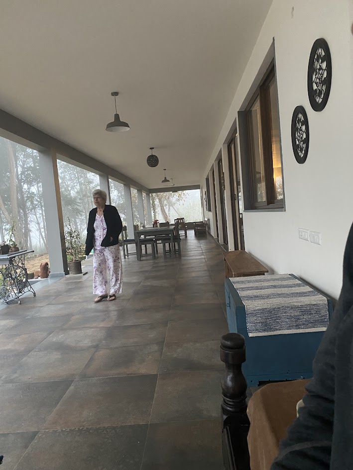 A year back when the UTI like symptoms returned she ensured we had a plan for all preventive treatment. She would very politely but firmly organise us to organise her hospital visits. During these visits to the hospitals, she was clear in her demands from doctors and always deceptively polite watching for doctor’s manner of speaking and explaining.  The hospital files were always organised with not a single paper or report missing. She went to all appointments with a list of symptoms written down and handed it over right at the outset instead of tiring herself out saying the symptoms she was already tired of bearing. When it was certain that the cancer was back she thought about it. “I am not afraid of dying but I want to organise for my care so I don’t suffer”, she said. Finally she opted for pain and palliative care with St John’s after rejecting one at Aster in November 2023. With that settled she went ahead to live her normal life loving everyone who loved her including the street dogs. But fear was creeping in and she became scared of being alone. We were told, Everytime you are not in station, the very thought makes me anxious  and then I become nervous. I’m no more a giant. My inner strength is ebbing.“. One of us started staying back or we started making only day visits to Shibira and when it was impossible because of farm work we would leave for a day without telling her so she would not get anxious that we weren’t in town. One tool to keep her in the dark about our absence was a Indian Express newspaper. We started taking a second newspaper and would send it to her with a pink slip daily at 11 am. This would be done even when we weren’t in town and she would be none the wiser about our absence. For months, till her eyes sight dwindled, she read two newspapers daily keeping her mind sharp.