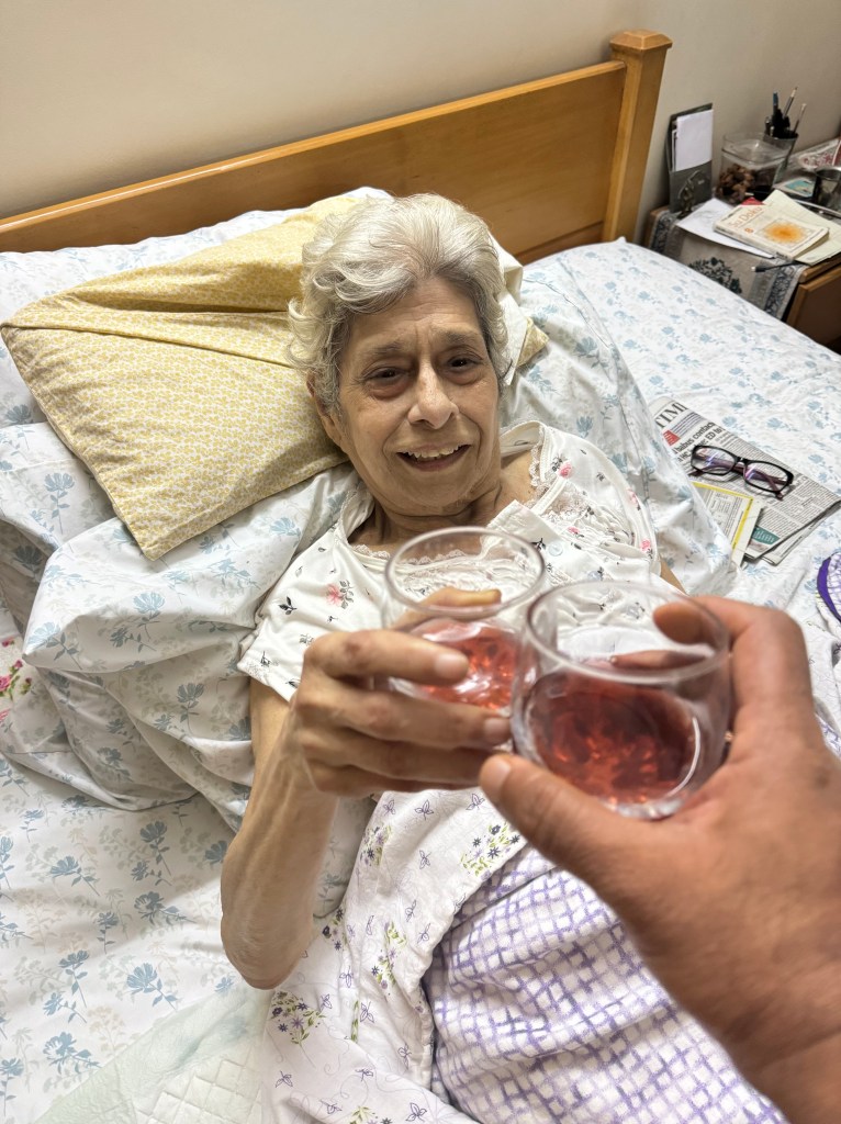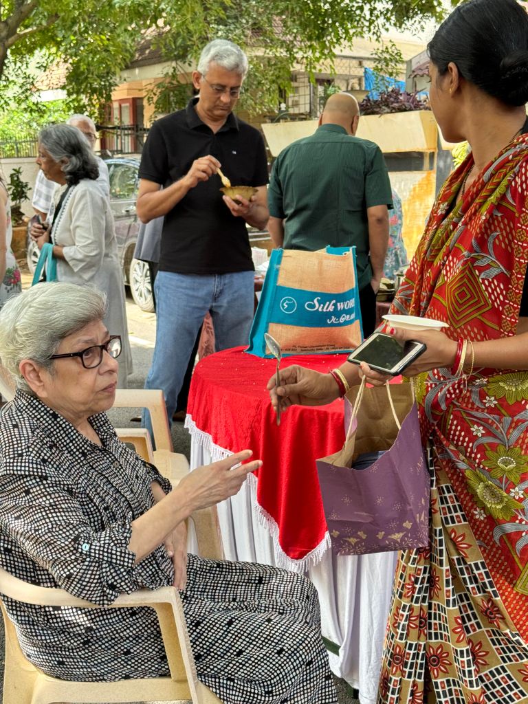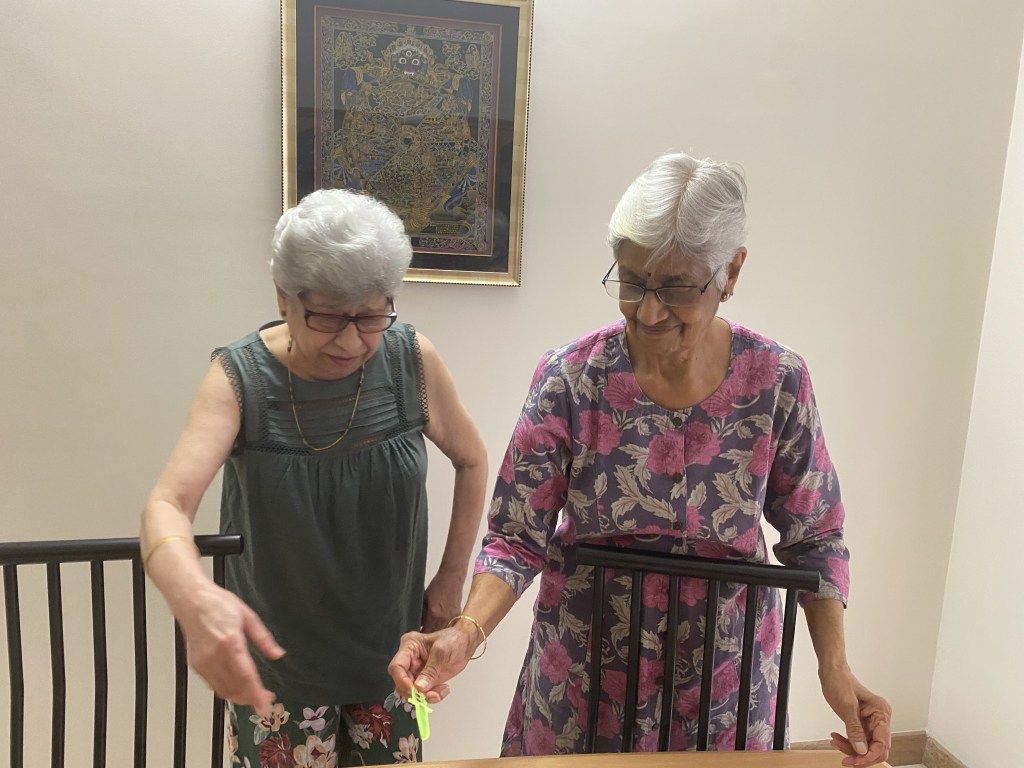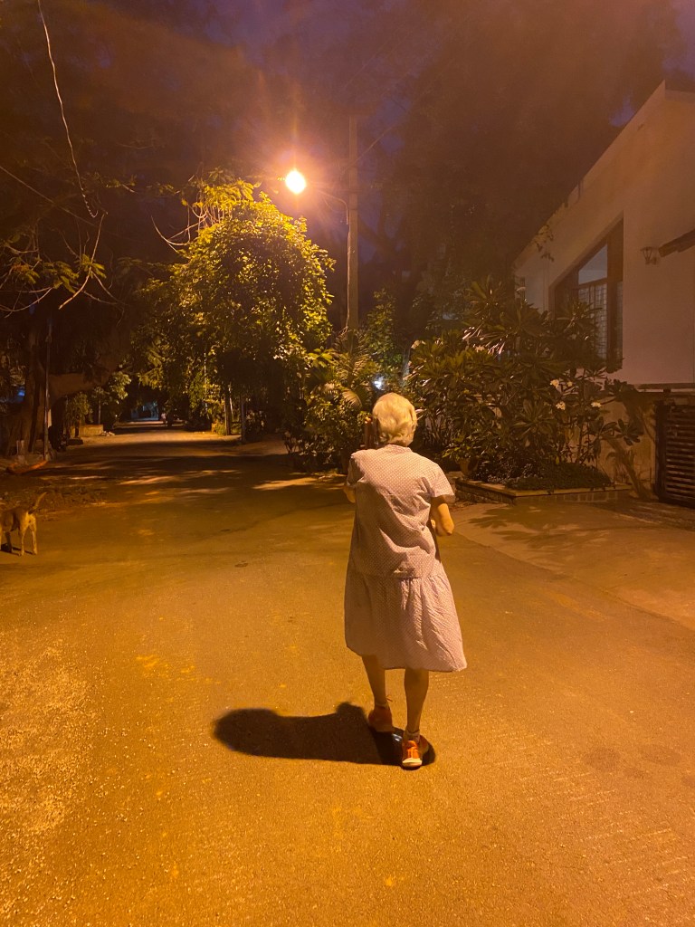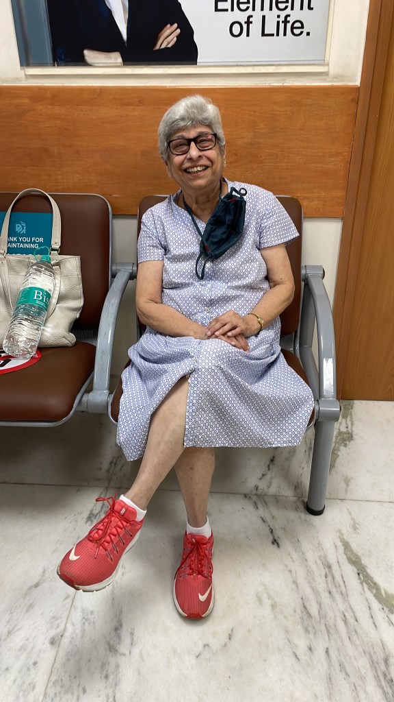 This sanguine activity started 6 months ago two months after St John team started visiting her every friday starting Jan 1 2024. She started speaking to lawyers on how to keep a document that detailed what’s to be done with her body if she passed away since she lived alone most of the time. Suddenly she called us one day to read and sign a document that detailed that we were in charge of her funeral arrangements and she wanted her ashes to be flown in water. Clean Water was underlined. The document was signed by her children in their next visits. That done, out came her precious memories and “things” including pearl purses, precious chiffon and Parsi sarees. She made a list of everything she wanted to give away and called each person to tea and handed her pre-loved things over or shipped them off to friends in other cities. We know we will treasure the gold plated miniature Airbus lapel pin she gave us which belonged to her airline days and the sarees she insisted we have as they would magically dent our “pathetic saree sense” into shape! But can I please have the red shoes! we asked. No, she said. After I go then you can. I love my walks in them!