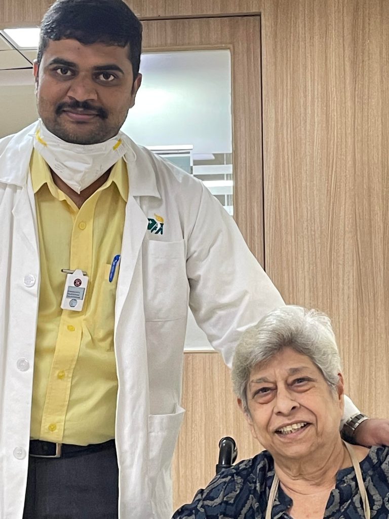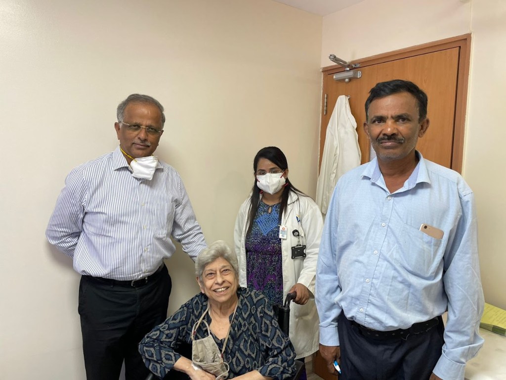 On 1st January 2024 St John’s Pain & Palliative care team started visiting her at home the day we first started “writing” this article. First come first served she smiled giving her first “interview ” A team of two doctors and a junior doctor paid a visit at about 12 in the noon. They will come to provide guidance or any help needed once a week so that I don’t have to go to the hospital ever so often. This is free of cost. I am really amazed. This is called service to the sick and needy. I have decided to give a small donation to the hospital off and on.”