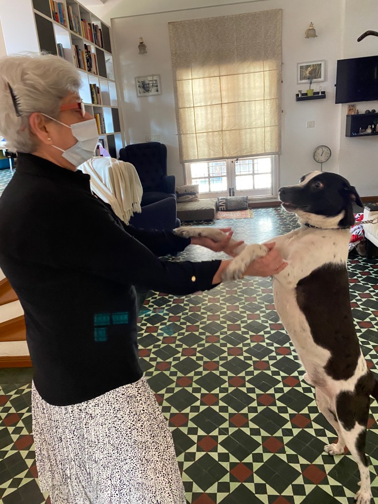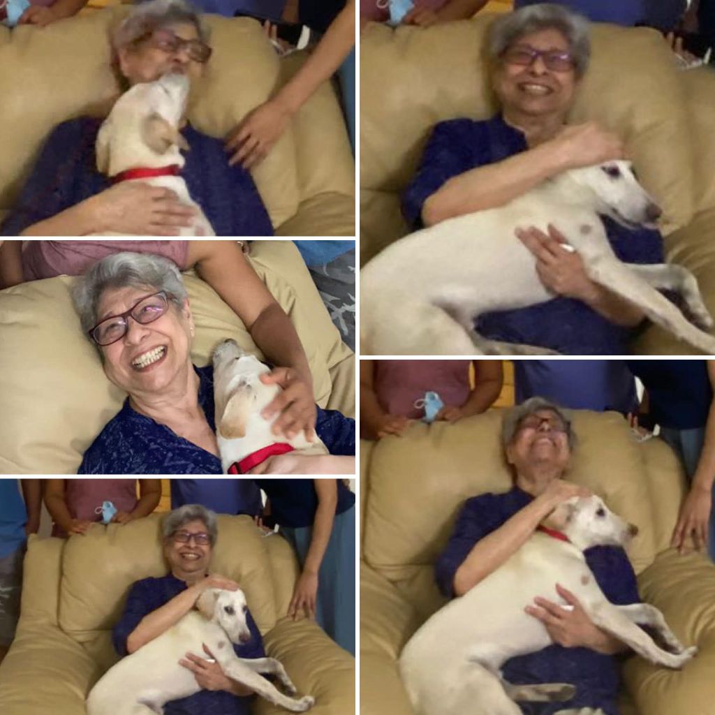 So from self distributing mangoes from her farm to all the neighbours middle of covid, to knitting mufflers and monkey caps for her help and her friends far & near, from fostering a stray for a few hours before they went off for adoption, to throwing “well done” get togethers for animal welfare volunteers who aced the adoption, from asking that she be taken for walks late at night, to accompanying us unannounced to surprise animal welfare volunteer Debaleena on her birthday, from agreeing to plug our Firestick into her TV and making it smart for Netflix and Prime, to painstakingly learning how to navigate the two remotes to watch movies and switch to news, Gool used everything that she could get and kept herself healthily sane. The wild mustang like personality that she showed us quite often made us introduce her to Heartland, a multigenerational saga of a horse farm in Alberta, Canada. We did not think she would but oh my god Gool watched through all 17 seasons!