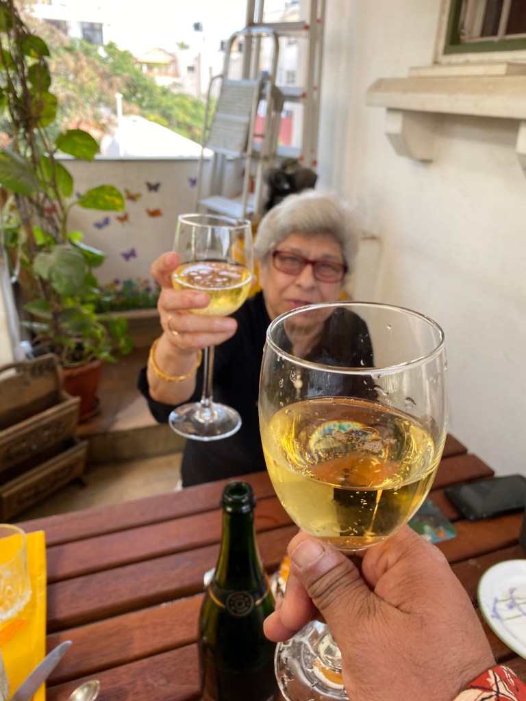 We asked Gool as she hit her 80th a few weeks back – What shall we do for your birthday? No bagel like the 79th birthday, Promise! On the eve of her 79th she was anti cakes. The bad news had come in and all she wanted was a one way ticket out of the world. So we bought a cheese bagel, called some friends over and put a candle in its centre which she blew. She just couldn’t stop laughing at the ingenuity of the stressbuster idea! Here’s a memory focussed on her smile and the bagel !