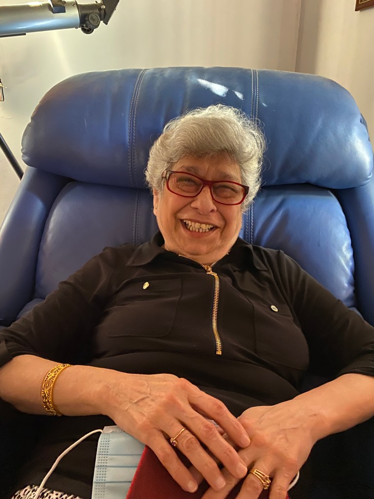 Cancer. Gool never had any health issues and took virtually no medicines. When the UTI like pains started during Covid she did a deep dive with her limited resources, spoke to women friends, took their advice and sought solutions from general physicians to Gynaecologists. Impatient to get to the root cause she flew alone to Bombay to meet her friends from her working life – a Mother daughter duo , both accomplished gynaecologists. Diagnosed as Stage 3 cancer Gool declared she would head back to Bangalore and ask us to help her with the treatment!