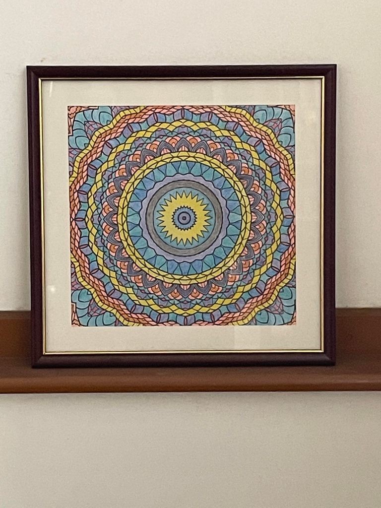 Covid was driving the world crazy with loneliness. With an instruction of no walking, Gool started mentally slipping away with the complete isolation. One day we told her Aunty you are depressed. Shift in with us please. She refused to be a “burden”. It is then we introduced the idea – would you like to try adult art – painting a mandala?. Yes ! At the speed of light she painted mandalas furiously and so neatly that she became an expert at it. We bought her more Mandala colouring books everytime the previous one finished and she chose the colour pencils – I got Camel pencils. They are better than the Faber Castle pencils you bought for me, sharper colours and more shades. She instructed us to go to another friend of hers down the lane, a few years older, who she thought was also suffering similarly from isolation. Give her my book and ask her to try the unfinished ones. Take some of my colour pencils – only some Faber Castle one’s. Rest I need! Huh! Okay – We can buy for Sheroo Aunty too. No, let her try first with mine. If it gives her peace she or her son can buy for her. Her Women Supporting Women vibe was so evident just like it was evident that Gool took space and protected her space.