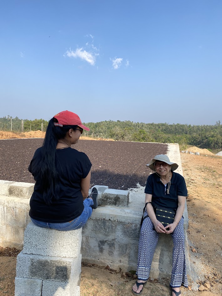 At the Farm she sipped from her glass of majjige and happily munched Chitranna made by a villager who sends us meals when we visit. She spoke about Humata, Hukhta, and Huvarshta. She sat quite comfortably on the stone bench under a guava tree in Siyara Estate coffee drying yard part of our Farm. We stared and sometimes gulped our majjige as we listened to her. We had to ! She just quoted the teachings of Zoroastrian prophet Ahura Mazda verbatim! We asked if she wanted to and could trek a little bit to visit the Goddess in our sacred grove. She jumped up with excitement, we must visit the Devi and seek blessings for your Shibira idea. From then on, she was turbo charged roaming everywhere, asking questions, admiring the coffee blossoms that precede coffee cherries and delighting as the irrigation system caught her and us in its shower. I think we forgot she was 75 years old. When we headed to the pond for inspection, she jumped to follow. We must not do this. We feel you have exerted enough for one visit, we said. She protested but was driven off to our friend’s home nearby.